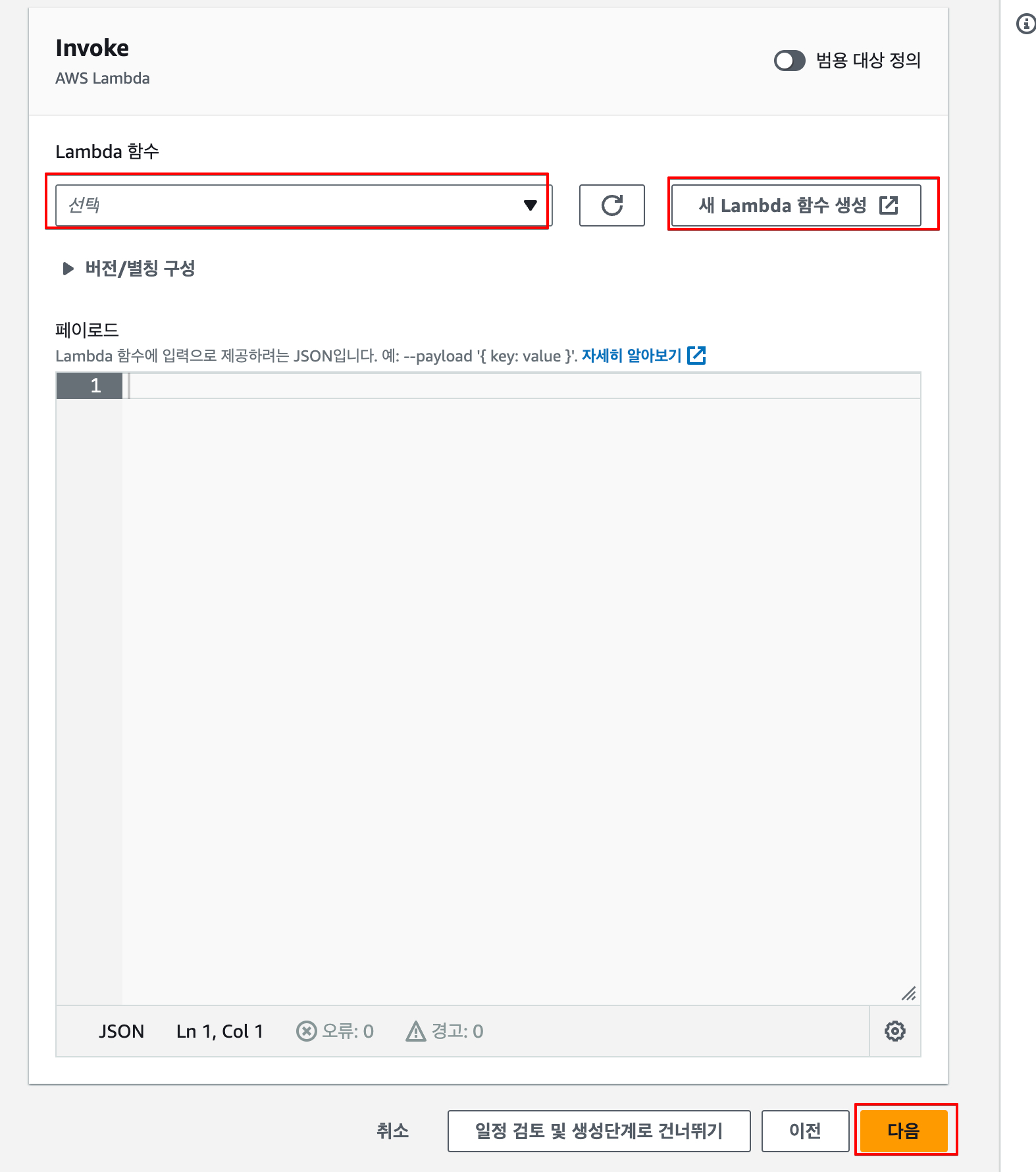 새로운 Lambda 함수 코드를 작성할 수도 있고 AWS SAM에 등록된 Lambda 함수들 목록도 나타납니다. 원하는 함수를 선택하면 됩니다.